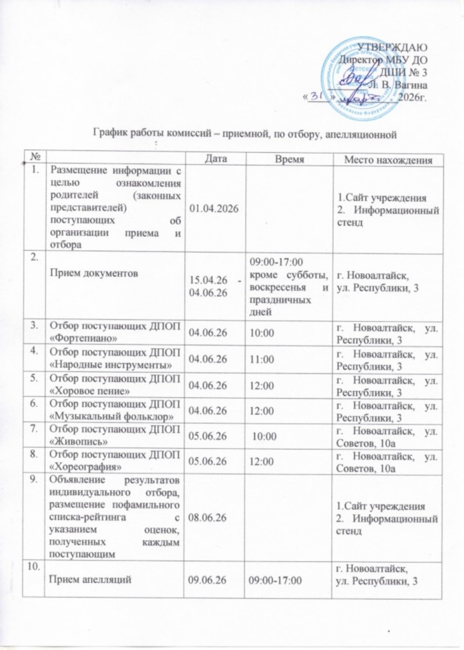 График работы комиссий - приемной, по отбору, аппеляционной Скачать